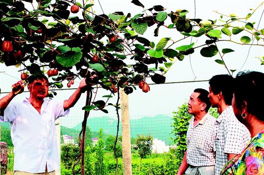 图为:大悟县宣化店镇杏冲村支部党员正在猕猴桃基地学习种植技术。(湖北日报全媒记者 张鸿 视界网 龚红焰 摄)