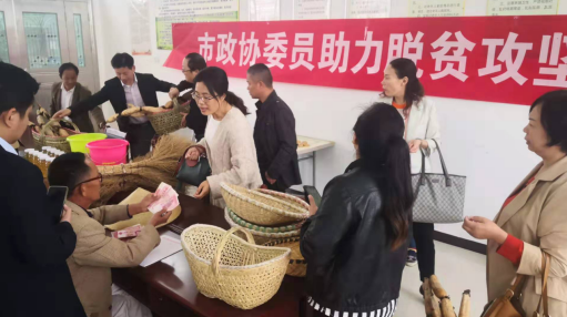 在曹市镇向东村消费扶贫活动现场,摆满了贫困户的农产品:土鸡、土鸭、土鸡蛋、土鸭蛋、莲藕、再生稻米、手工竹篾编篮筐等。政协委员们对贫困户手工竹篾编篮筐产品赞不绝口,纷纷用竹篾篮筐盛载农副产品,满载而归。此次消费扶贫,洪湖市22名政协委员在曹市镇向东村消费扶贫活动中定购贫困户农产品达18000余元。