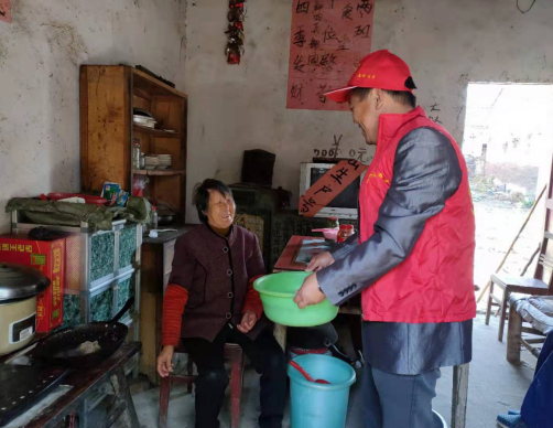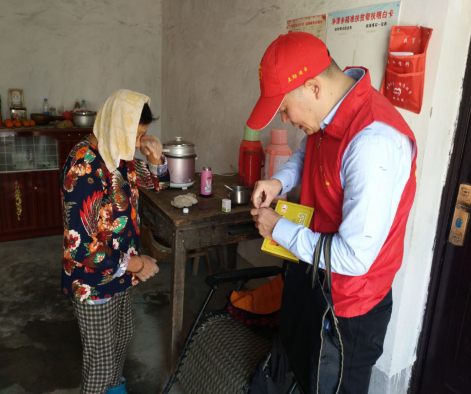 志愿者为患病贫困户购买药物,并指导其服药方式