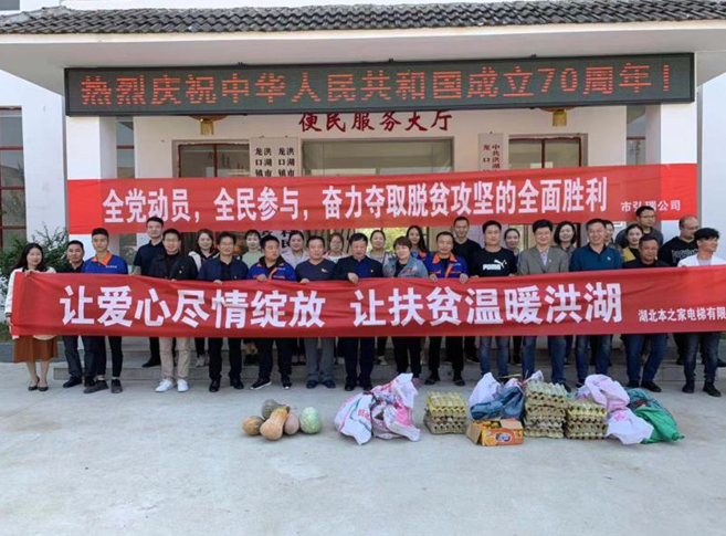“扶贫日”慰问贫困户。10月17日,洪湖市弘瑞公司联系“本之家”(快意)电梯洪湖公司对刘家边32户贫困户进行慰问,为贫困户送去了越冬棉被、食用油等物质,表达了对贫困户的关爱之心。