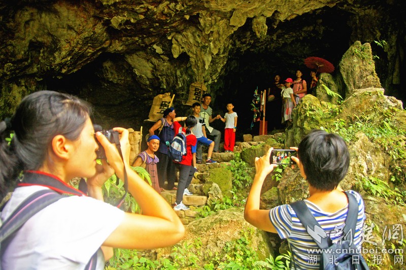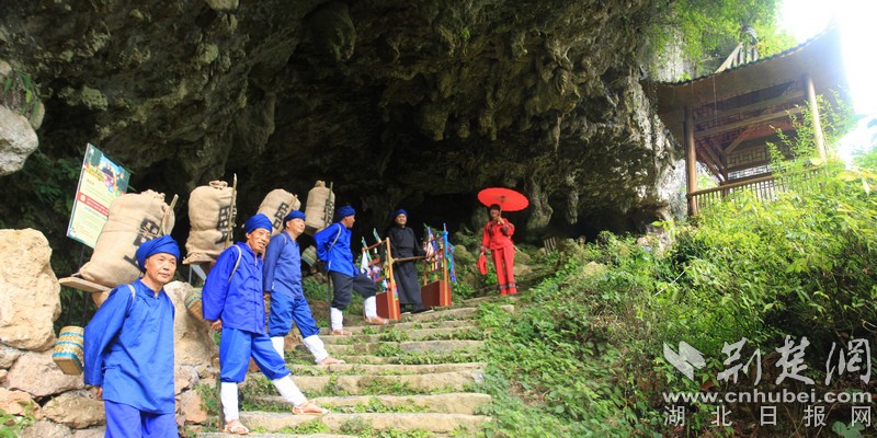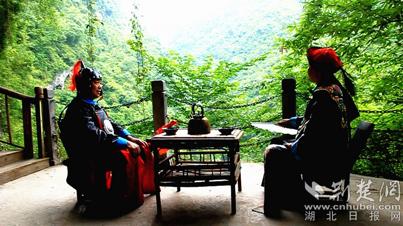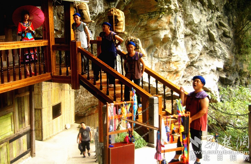 荆楚网客户端—荆楚网消息(通讯员 彭清慧 吴冰 向维)“货郎鼓儿响叮当,我为客人把歌唱,山歌飘到云天上,神仙听了也欢畅!”在恩施地心谷景区,建始县高坪镇石门村村民谈建琼一早就开始喊山歌,已成为游客争相合影的“红人”。