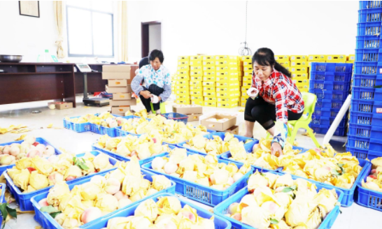 郭河镇花果飘香专业合作社,贫困户正在包装鲜桃