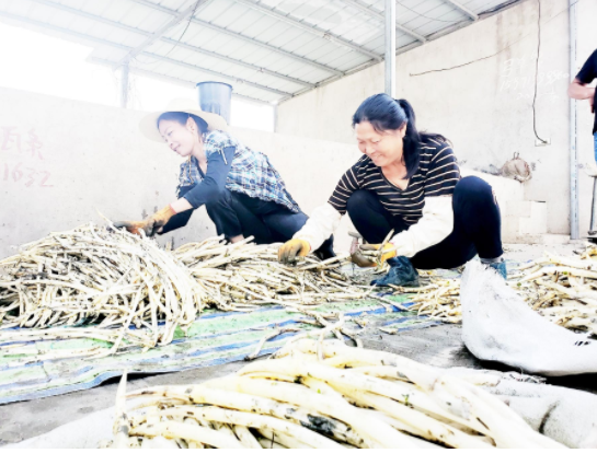 郭河镇姚河村藕带收购点收购贫困户种植的藕带