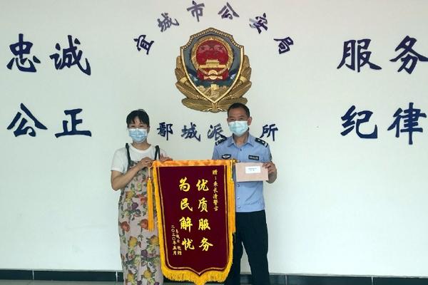 5月29日上午,家住宜城市某小区的李女士来到鄢城派出所,将一面印着“优质服务 为民解忧”的锦旗及感谢信送至民警朱长清手中,“谢谢你为我申请的经济补偿,否则我只能忍气吞声了!”