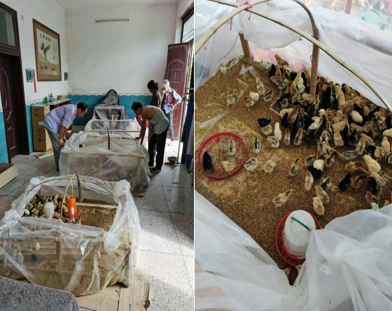 图为:郑明福孵化的第一批小鸡