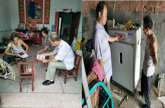 经了解,郑明福今年67岁,是监利县网市镇高庙村建档立卡低保贫困户,本人二级肢体残疾,妻子张金安患有脑疾,夫妻俩生有一儿一女,女人已出嫁,儿子2018年高职高专毕业后在福建打工。随着形势发展,过去家庭收入主要靠郑明福做篾匠活已难以维持。2019年,县人民银行驻村工作队队长张哲、队员陈国强鼓励郑明智发展养鸡,并资助他购了250只小鸡,年底获利5000多元。今年初,郑明福尝到甜头后,准备进一步扩大规模,结果因疫情影响购不到鸡苗。张哲、陈国强了解情况后,通过查阅信息发现网上有销售孵化小鸡的机器可以发展养鸡,两人又花费1500多元为郑明福购了一台。6月初,第一批240只小鸡孵化成功,郑明福不仅自己有了鸡苗,还出售给周边群众,其间张哲、陈国强两人多次帮助他购买鸡蛋、饲料、药品等。如今,第二批鸡苗也正在孵化中,郑明福对以后的发展充满信心。