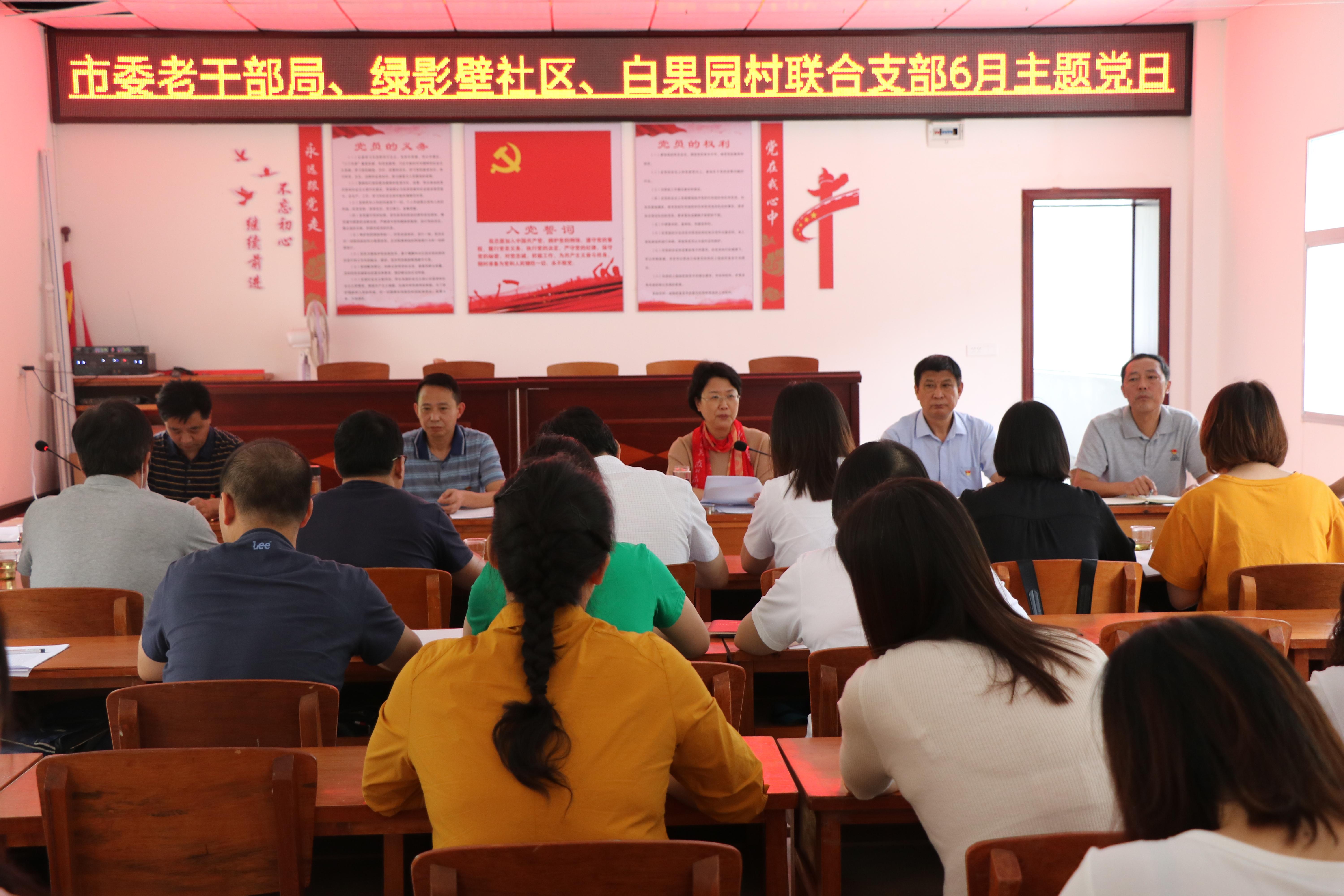 6月19日,市委老干部局机关党支部与襄城区古城街道办事处绿影壁社区在保康县城关镇白果园村开展联合支部主题党日活动。市委组织部副部长、老干部局局长王海梅,市委老干部局班子成员、局机关支部党员、局驻村工作队,绿影壁社区党员,白果园村部分党员参加了活动。