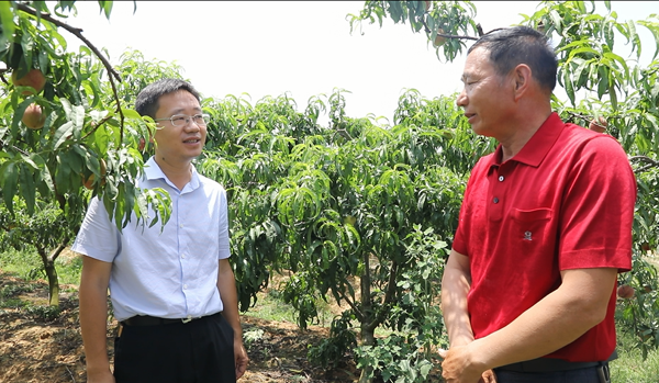 正在桃园察看桃子长势的村民王正武开心地说,“在村里的带领下,我也栽了六七亩黄桃,每年能增收3万多元。”