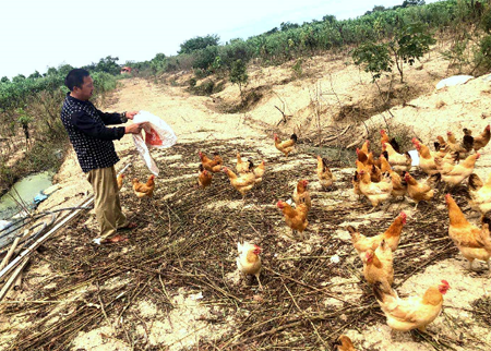 说干就干,杨大付夫妻俩起早贪黑,不仅帮着女儿打理养鸡场、销售鸡蛋,还到两湖市场采购蔬菜在市场上销售。在夫妻俩的细心管护下,女儿的养鸡场越办越红火,自家的家庭年收入也近5万元。