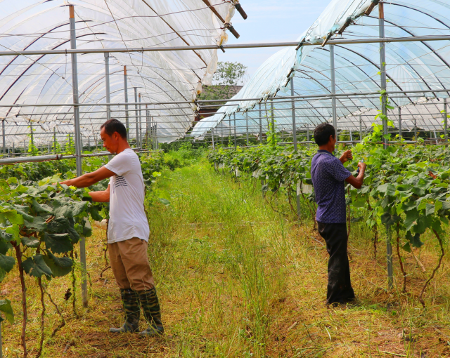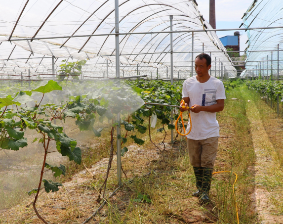 “村集体投入资金25万元,占地25亩,现已吸纳2名贫困户就业,8月中下旬葡萄成熟就可上市。”应城市杨岭镇团山村党支部书记、村委会主任赵红生介绍。