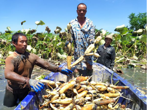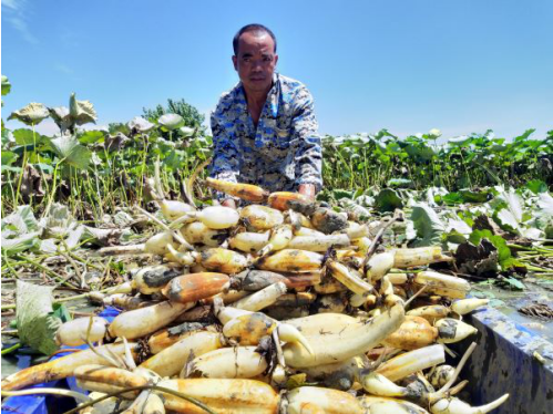 “现在正是菜藕上市的好时节,有时一天有万元收入。”脸庞黝黑、性格爽快的李永发笑着说。