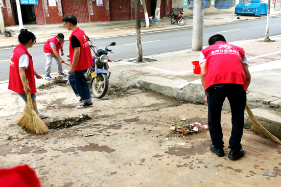 干部和志愿者们身着志愿者红色马甲,拿上扫把、火钳、提上水桶围绕着乡政府大院、袁冲乡街道等进行拉网式卫生大扫除,对路边杂草、塑料袋、废纸屑碎砖块等垃圾进行认真清扫。虽然正值酷暑,顶着大太阳,汗水浸湿了衣服,但是没有一个人叫苦叫累,没有一个人怕脏不干,大家热火朝天、干劲十足的身影俨然成了袁冲乡一道靓丽的风景线。