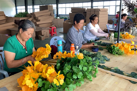 炎炎夏日,走进位于张集镇的欧希工艺品有限公司,记者看到,生产车间内,工人们正在忙着赶制订单,一派热火朝天的劳动景象。该公司依靠仿真花规模化生产,采取“公司+农户”、加盟、散户加工等运营模式带动周边100多人增收致富。