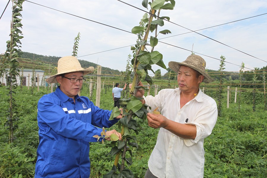 陈湘和村民在种植基地采摘。