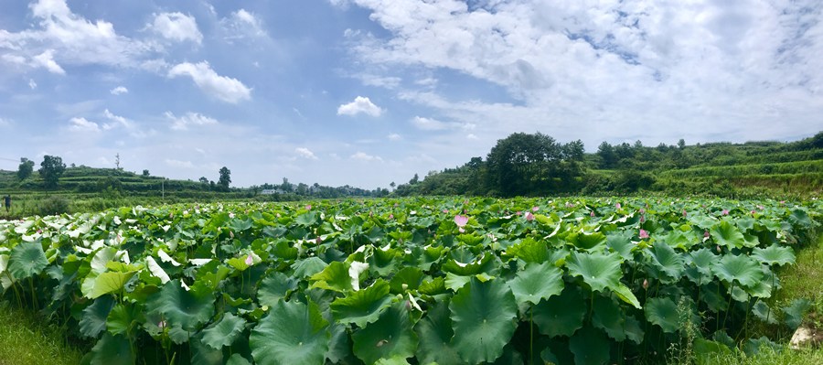 山下的鸿茅冲,蜿蜒曲折,莲花妖娆,亭亭玉立,荷叶田田,一望无边。村里大姑娘小嫂子有事无事爱往这冲里跑,自拍、合影再发个朋友圈,惹得十里八乡爱美的人也禁不住前来观赏,啧啧声惊醒了荷塘游动的鱼儿和那翩翩的蜻蜓。一时间,鸿茅冲只得改名换姓:荷花冲,一个诗意浪漫的名字诞生了。