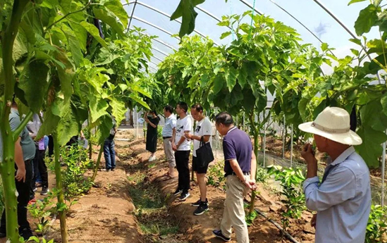 在汪家汊村,大家集中参观了大棚里的“乡香茄”,听取了村委会工作人员对“乡香茄”的介绍,就产品包装、产品口感等进行交流,还对如何实现在商场、超市、电商平台销售提出了意见和建议。