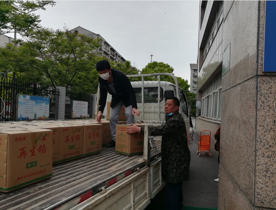 驻村工作队帮助喜盈粮食合作社到市审计局生活小区销售大米。