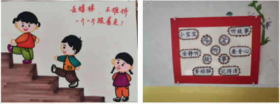 让环境会说话,是幼儿园非常重要的环境育人途径之一。在鹤峰县容美民族幼儿园,吕琦老师发现老师们虽然也有环境布置的意识,但是从环境创设中很少看到儿童,难以看出儿童的需要。所以,在开学前的准备工作中,吕琦老师首先给全体教师进行了环境布置的培训,从色彩的搭配到环境创设的主题教育内涵,结合范例进行了详细的解读,并且亲自示范。中班年级组长张老师培训后和吕琦老师交流时说:“我们以前只会把想说的话用文字打出来,把买来的宣传画贴在墙上,其实是说给大人听的。这次吕老师让我们自己动手,把自己当成儿童,把话说到孩子心里去的尝试,很有意思。”