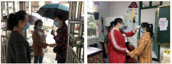 老师们扮演幼儿、家长,重点根据幼儿接送防控及师生在园突发情况展开演练,对每一环节的流程及应急处置程序进行模拟情景。一次次扮演,一次次模拟,一次次演练,老师们清楚感受到了幼儿和家长入校的各种困难和可能出现的情况,清晰明确了各个环节的操作。不仅如此,吕琦老师还把每一个环节制作成了形象的图片,为的就是在细节中提高效率,增强幼儿和家长的成功感。