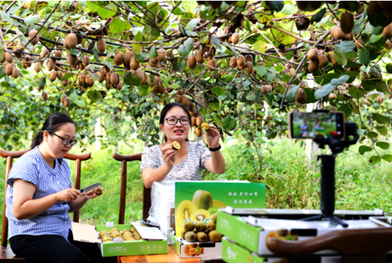 但受今年的疫情影响,基地不仅生态旅游产业受到冲击,还损失了不少省外订单,眼看着又大又好的猕猴桃就要烂在地里,刘珊珊果断加大网络推广力度。特别是依托今年湖北省电商扶贫政策,她从原来的一家某宝店发展到如今抖音、中国扶贫网、农商行利农购等平台全方位上架销售。
