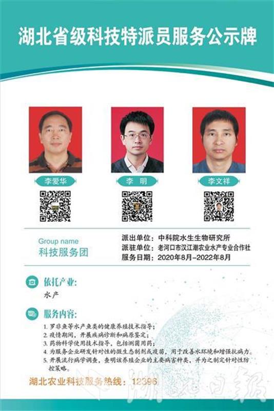 湖北日报讯(记者文俊、通讯员邓坤烘)8月31日-9月2日,省科技厅、中科院水生所联合组织的“湖北省级科技特派员服务团襄阳行”活动先后走进襄城区、襄州区、老河口市、宜城市,向45名农业企业负责人做了现场技术推广,深入3家水产企业进行调研服务,以科技助力复工复产推动农业企业疫后重振。