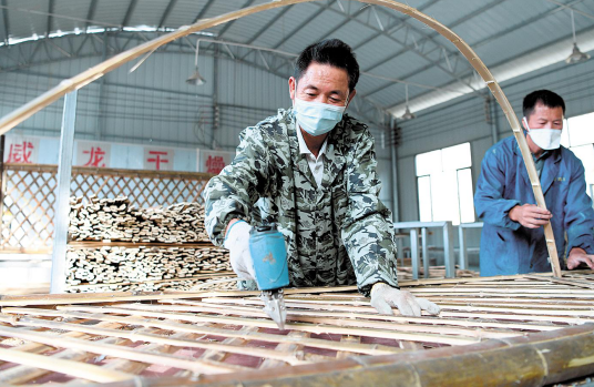 黄鹤村稍年长的村民,几乎人人都会简单的竹子加工手艺,村里优先聘请十几名贫困户成为车间工人,以传帮带的形式,将一批贫困户培养成竹制品加工艺者。