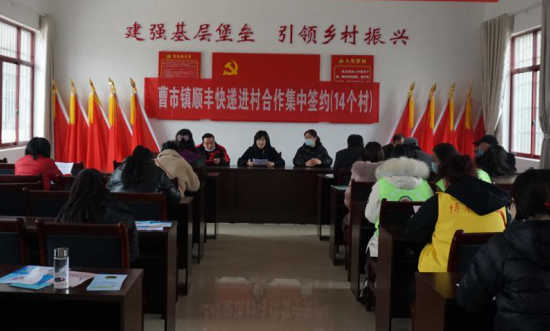 图为顺丰快递与村集中签约