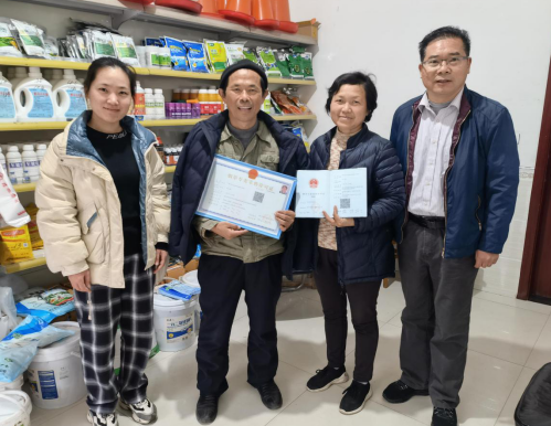 3月16日,荆州市教育局驻清河大队扶贫工作队受帮扶人施小峰同志的委托,郑重地将来之不易的烟草专营许可证转交到李志刚夫妇手上,至此“志刚饲料销售门市部”又拓展了一条经营增收渠道。接过经营许可证,李志刚夫妇乐开了花,洋溢着喜悦的笑容,也饱含对帮扶干部施小锋的真情感激,展现出对未来美好生活的憧憬和信心。