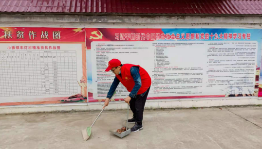 他们身穿红色马甲,头戴志愿者帽,行走在田间地头与村头巷尾。大家拿起扫帚、铁钳等工具,纷纷加入到村庄清洁行动中,现场一派火热的劳动场景。清扫活动结束后,大家还当起宣传员,入户宣传清洁家园行动,引导村民加入到“村庄清洁日”行动中来,搞好门前卫生和庭院绿化。