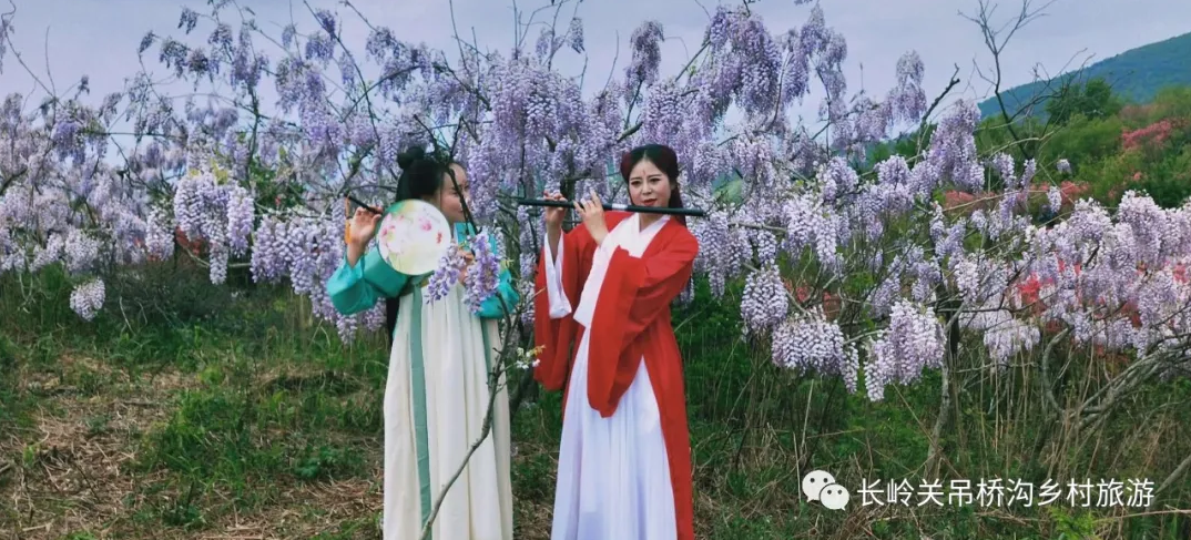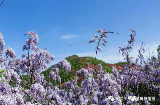 游客免费畅游紫藤花海,开启吊桥沟浪漫之旅,助力长岭关乡村振兴。