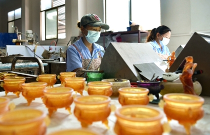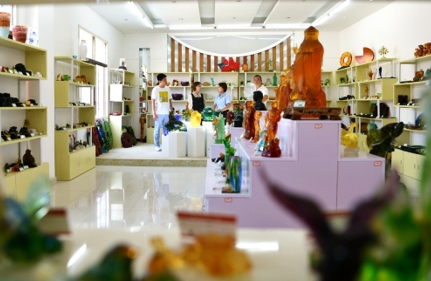 该公司先后与六福珠宝、广州塔、迪士尼、科勒卫浴、施华洛世奇、富力地产、故宫等知名企业和单位合作,提供琉璃相关配套产品,将琉璃运用到各个领域。目前,公司带动就业员工百多人,年销售额3000余万元,创外汇200多万美元。