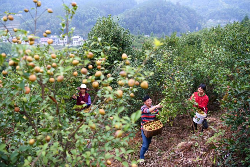金黄的油茶果,照亮了群众的“红日子”,鼓起了农民的“钱袋子”,全县催生了1.5万户油茶种植大户。