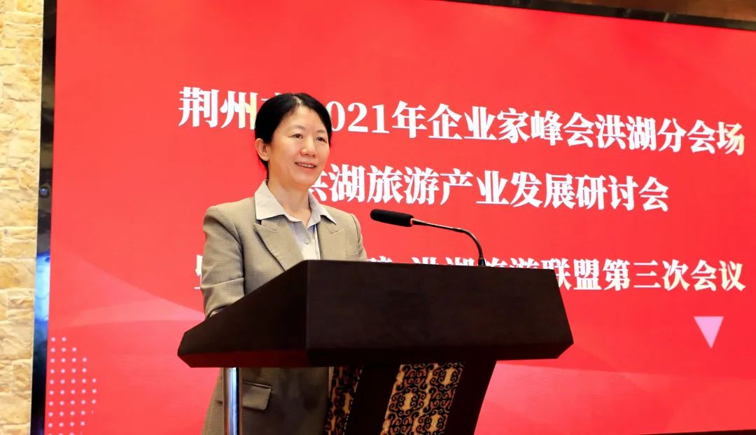 荆州市政府副市长孙玉秋代表荆州市人民政府对洪湖市旅游产业发展研讨会暨岳阳-赤壁-洪湖旅游联盟第三次联会的召开表示热烈的祝贺。