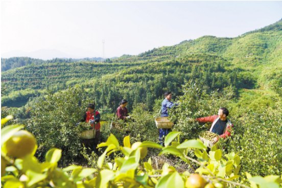 村民在油茶基地摘油茶果。 (通讯员 刘建平 摄)
