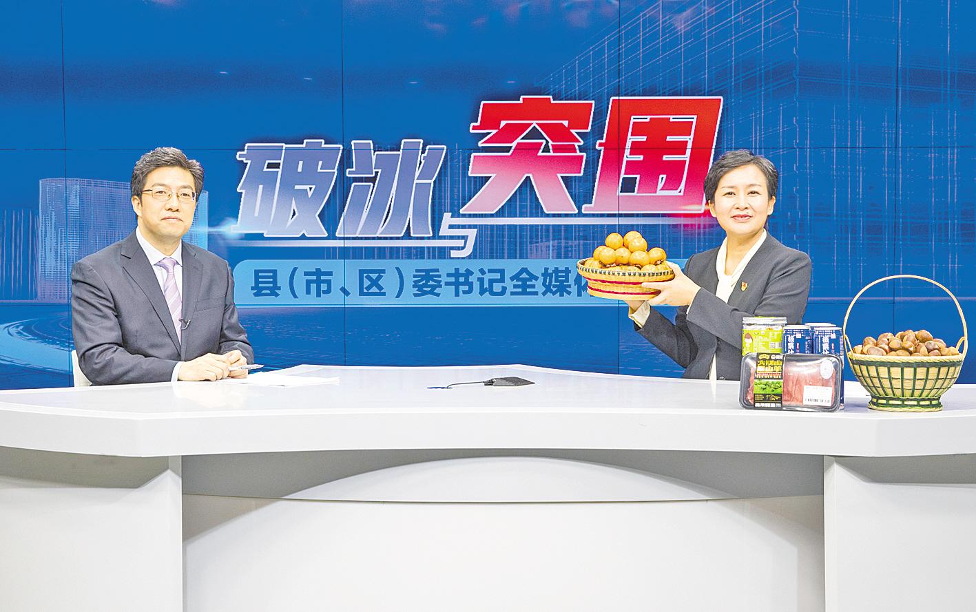 11月21日,罗田县委书记郝爱芳(右)做客湖北日报5G演播室。 (湖北日报全媒记者 薛婷 摄)