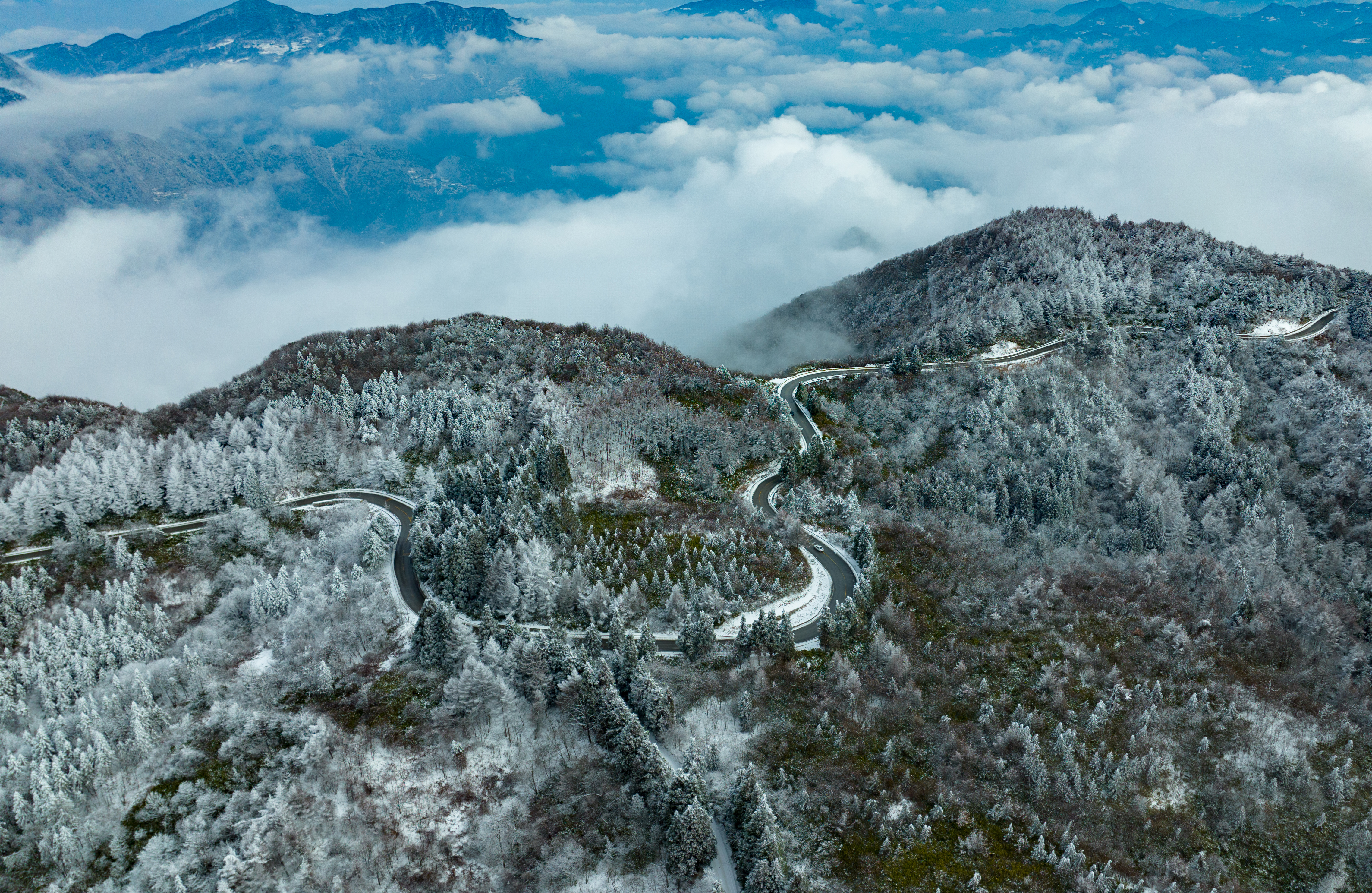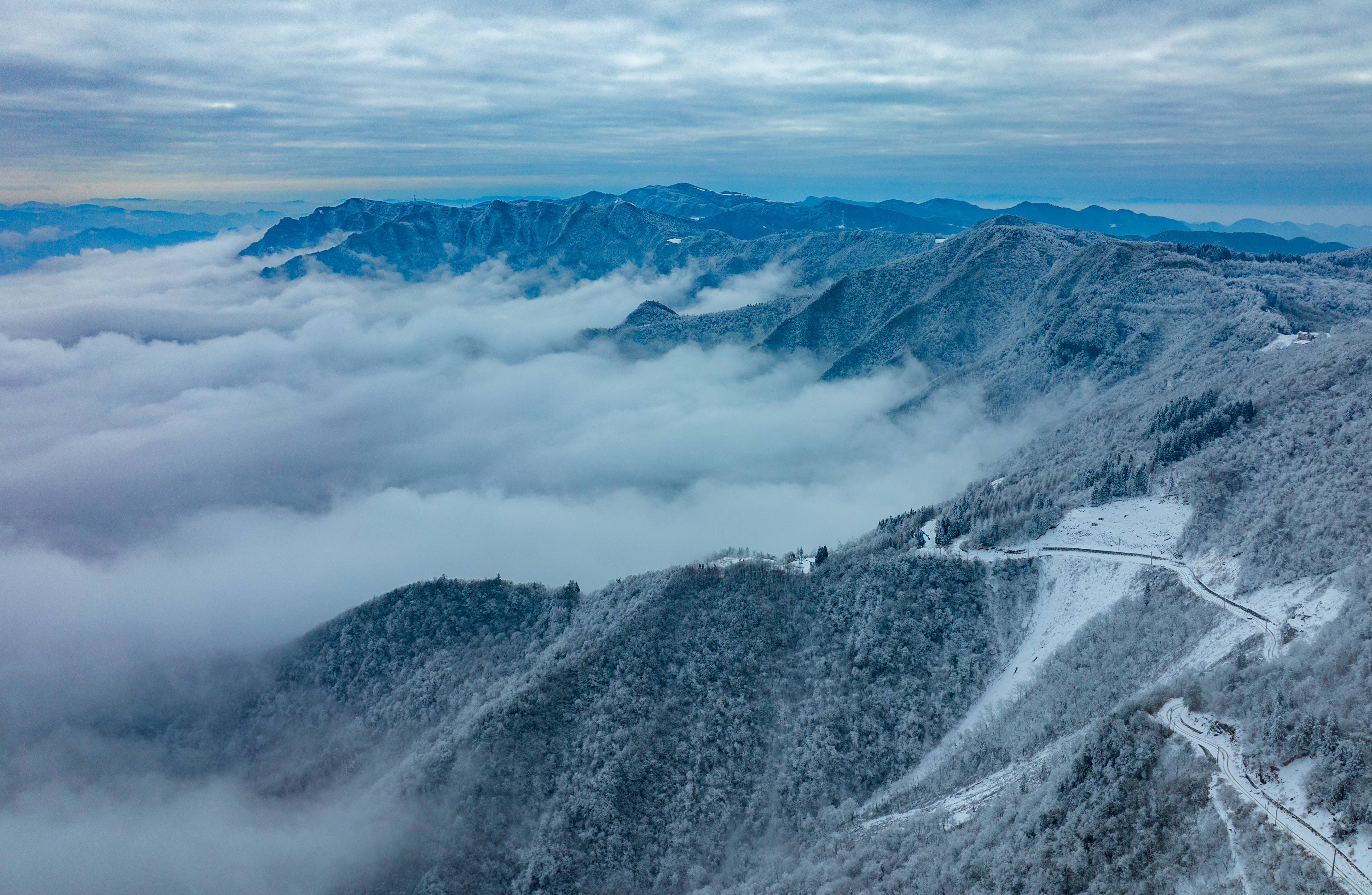 12月28日,航拍雪后绿葱坡,云海景观美如画。(付开思 摄)