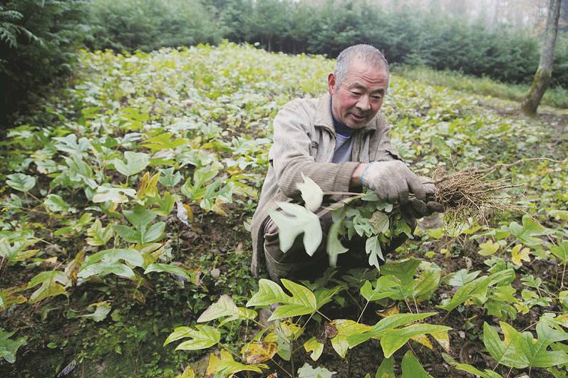 9日,竹山县林业技术员王明星在九华山林场苗圃里查看新移植的马褂木苗木。竹山县境内有丰富的马褂木、香樟、日本花柏等乡土树种资源,60多户林农抢先占领乡土树种培育市场,育苗农户年年见利,最大育苗户年收入可达3万元以上。今年,该县林业苗圃面积达1000余亩,可为秋冬造林提供800万株优质苗木。