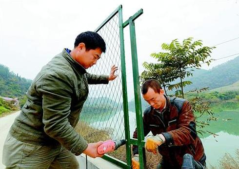 湖北日报讯 金盘洞水库是保康县城区7万多人的饮用水源,该县投入300多万元,加强水源地保护建设,在一级保护区安装防护网6000米,减少人为活动对库区水质的影响,预计月底完工。 (视界网陈泉霖 摄)