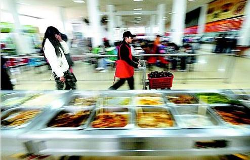 图为:中午12点半到1点半,小骆在北园餐厅收盘子。