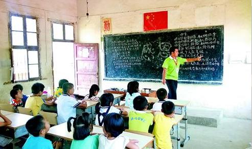 图为:来自大山,回报大山。今年7月,骆群曙给山村孩子上音乐课。