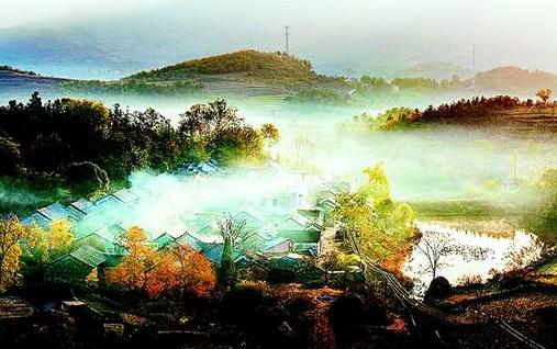 初冬时节,清晨的大悟九房沟烟锁雾漫,仿佛人间仙境。(视界网 朱春香 摄)