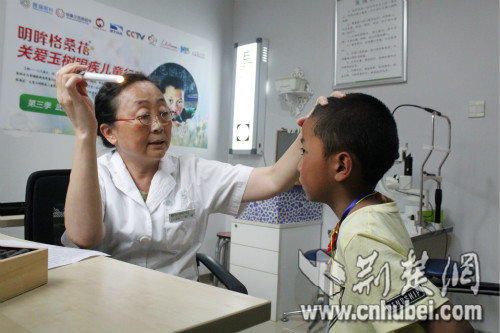 普瑞眼科医院的医生给玉树眼疾儿童进行检查
