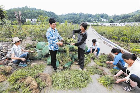 农村新报讯 21日,竹山县麻家渡镇总兵安村的留守妇女正在忙着种植麦冬草。