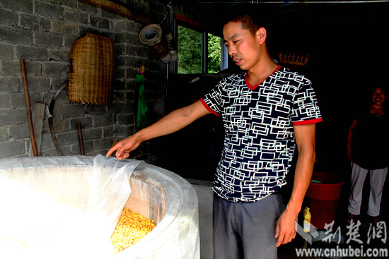 孙友来在北京打工时,曾经在牛栏山二锅头酒厂工作过。凭着这段经历,他在猪圈旁又办起了酒坊。“包谷酿酒剩下的渣滓可以喂猪。现在一个月光包谷要买1万多斤呢!县能源办的领导也来我家看了几次了,准备帮我在厂子边建口沼气池。这样猪粪利用起来了,烧火做饭也不愁了。”