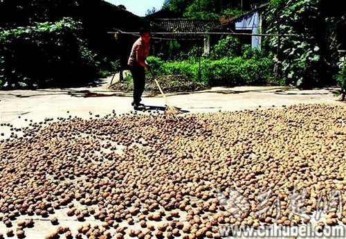 图为:晾晒核桃