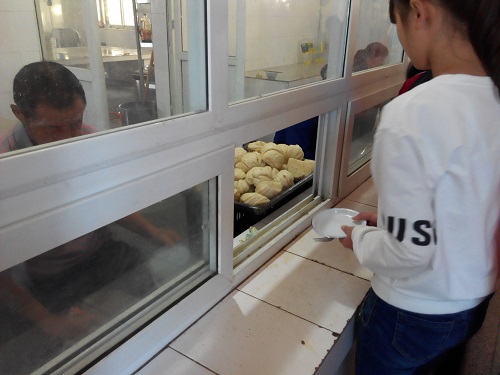 郧阳区白浪镇九年一贯制学校的学生正在领取早餐