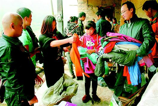 湖北日报讯 10月31日,十堰市温暖365天志愿群的25名爱心志愿者,带着市民捐赠的1000余件冬衣、棉被、棉鞋等过冬物品,来到郧阳区叶大乡的闵家村,为该村20余户贫困村民送去爱心和温暖。 (视界网 薛乐生 摄)