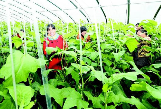 农村新报讯 11月11日,村民在保康县寺坪镇庹家坪村蔬菜专业合作社大棚里劳作。