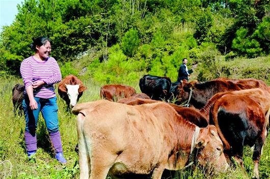 农村新报讯 6日,利川市建南镇星星村一组养牛户覃宇秀将“恩施黄牛”赶到山上放养。近年来,在国家和省里的养牛奖补政策激励下,覃宇秀连年扩大养殖规模,现饲养黄牛38头,其中25头为能繁母牛,可得国家政策补贴1万多元。目前,该镇饲养恩施黄牛及肉牛总量近万头,为整体脱贫奠定了良好基础。(通讯员覃宇锋摄)