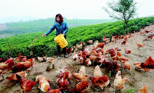 农村新报讯 5日,竹山县宝丰镇韩溪河村三组农家女吴艳忙碌着喂养土鸡。吴艳在计生协贫困母亲“幸福工程”项目的扶持下,利用参加新型农民培训所学到的种植、养殖技术,承包了村后100多亩山林散养本地土鸡,年出栏散养土鸡6000多只,实现生态种养、科技致富双赢,实现了“脱贫梦”。(通讯员朱本双摄)